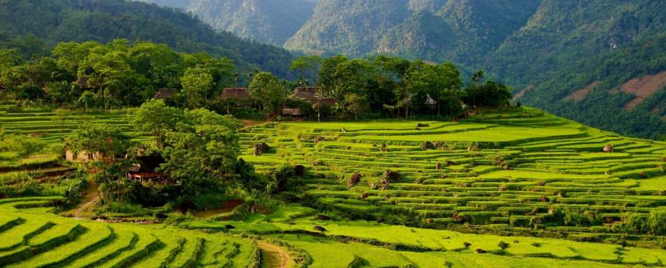 A gentle morning after the drama of arrival. The guided trek sets off at half eight, three kilometers along quiet country roads and traditional bridges, through rice paddies and into the Thai and Muong villages that the valley has been home to for generations. The guide knows the history and the people; the conversations along the way are as valuable as the landscape. The walk concludes with an open-air lunch, every dish cooked with local spices and eaten in the kind of surroundings that make food taste better simply by virtue of where it's being eaten.