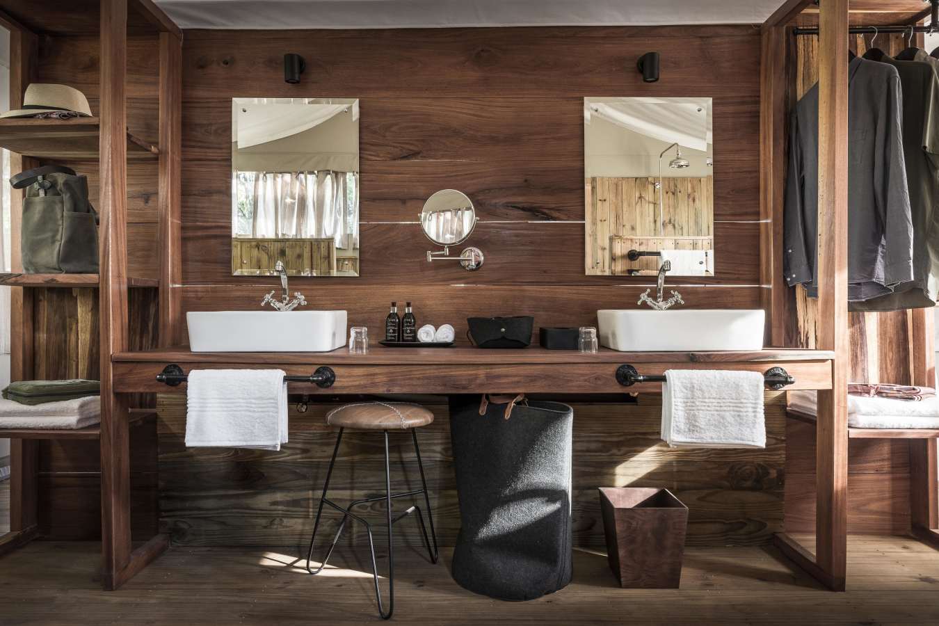 The traditional style tents feature an attractive daybed, plush beds with white linens, textured cushions, oiled teak furniture, overhead fan, mosquito nets, indoor bathroom with rainfall shower, outdoor slipper bath, private veranda, and modern amenities, while still upholding a true safari experience. Each tent includes single beds which can be configured to create a King or Twin Room. There is also a complimentary laundry service.