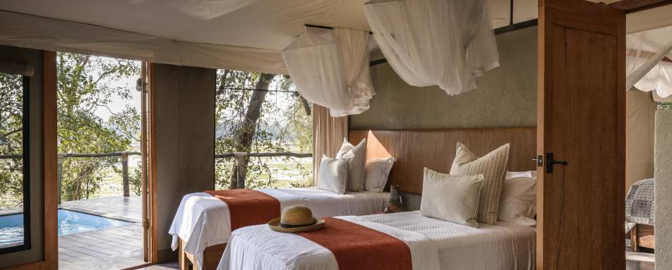 There are four King Rooms and three Double Rooms (with Queen beds), one of which can be configured to accommodate two adults and two children. For an exceptional stay, book the Director’s Tent which comes complete with Wi-Fi, DSTV, a Nespresso machine and outdoor sleeping area. Just a short walk from the main deck, all guests have access to a well-equipped and air-conditioned gym.