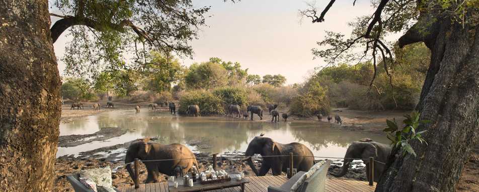 Kanga Camp is set in private concession on the edge of Mana Pools National Park. The camp is built around Kanga Pan, a permanent water hole, which as the only source of permanent water in the area, draws in incredible game during the dry season.