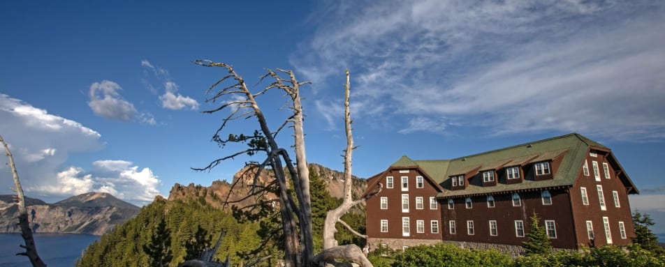 Crater Lake Lodge overlooks the lake at Rim Village, offering unbeatable views of the lake. Sitting 1,000-feet above the lake on the edge of the caldera, although the property was rebuilt in 1995, the lodge offers the warm welcome and the period charm of a bygone era. The Great Hall boasts an impressive fireplace, historic rustic charm and is the ideal spot to relax with a drink, play a game and make new friends.