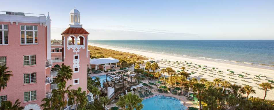 An iconic building, known as the ‘Pink Palace’, a classic American hotel boasting old-world charm from the 1920’s. You will be treated to ample facilities and style with attentive and welcoming service, in a prime location on St Pete Beach.