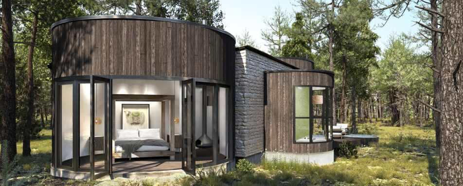 The four Green Hauses, which are hidden away in the forest, feature a private deck, a crackling fireplace, and a skylight in the bedroom, from which spectacular night skies can be enjoyed from the comfort of your bed. Finally, The Green O features one unique Light House which has been cleverly designed to let in the light through its expansive floor to ceiling glass windows. Marvel in the spectacular views from the hot tub on the private deck, or wind away the night roasting marshmallows by the fireplace.