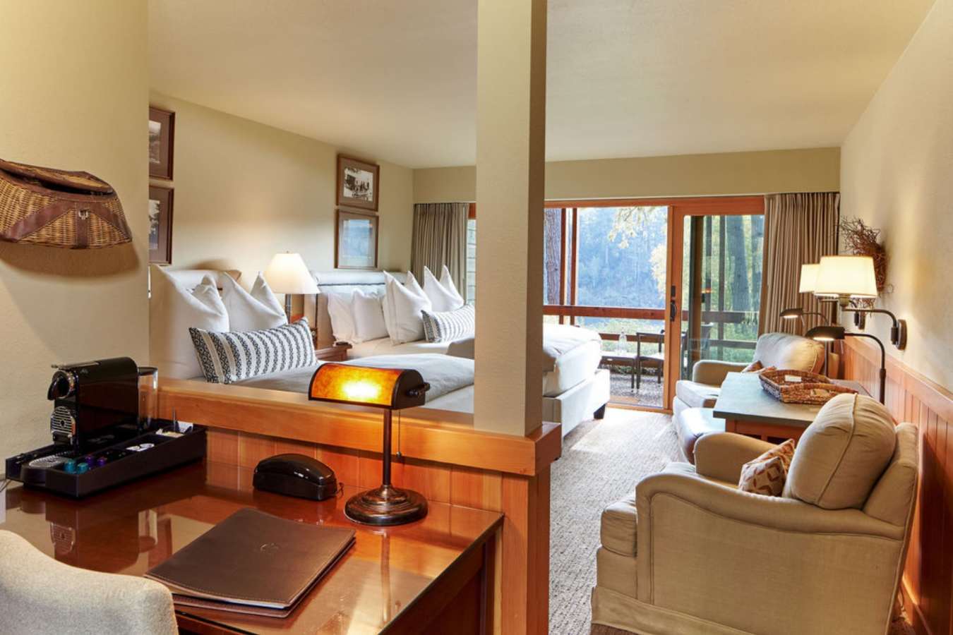 The service is fabulous, and the lodge has maintained the Tututni’s custom of greeting everyone by name. There’s even a friendly lodge cat and Labrador to assure a warm welcome. Bordered by evergreens, the lodge’s lush velvety lawn leads down to the Rogue River and the rooms here are named after points of interest, such as a fishing hole or pioneer homestead, along its course. Guests can also choose to stay in one of two suites or three standalone houses.