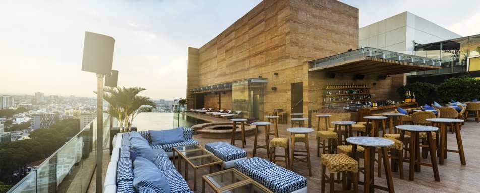 The facilities at Hotel Des Arts also embrace this eclectic combination. Enjoy afternoon tea accompanied by music from the grand piano in the ground-floor Café des Beaux Arts, before heading to the rooftop Social Club Bar, where you can sip on a delicious cocktail and listen to chill-out tracks played by a DJ as the sun goes down. The hotel's rooftop boasts the highest bar and infinity pool in the city, and provides fantastic views across Saigon. While the pool is reserved for in-house guests only, the bar is popular in the evenings with outside visitors.